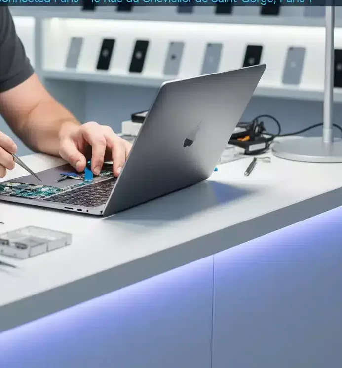 Chez Connected Paris, nous sommes spécialisés dans la déssoxydation de MacBook Air à Paris, avec une prise en charge rapide et des pièces Apple d’origine lorsque des composants doivent être remplacés.