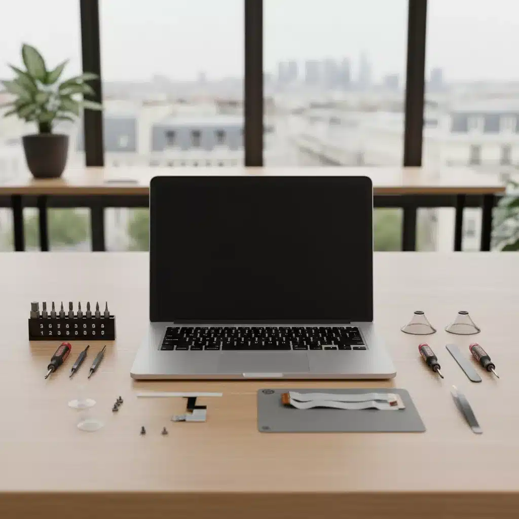 Sur le MacBook Pro 13″ A1708, ces problèmes sont souvent liés soit à un trackpad défectueux, soit à une batterie qui gonfle et pousse le trackpad par en dessous. C’est pour cela que nous réalisons toujours un diagnostic complet avant de remplacer la moindre pièce.
