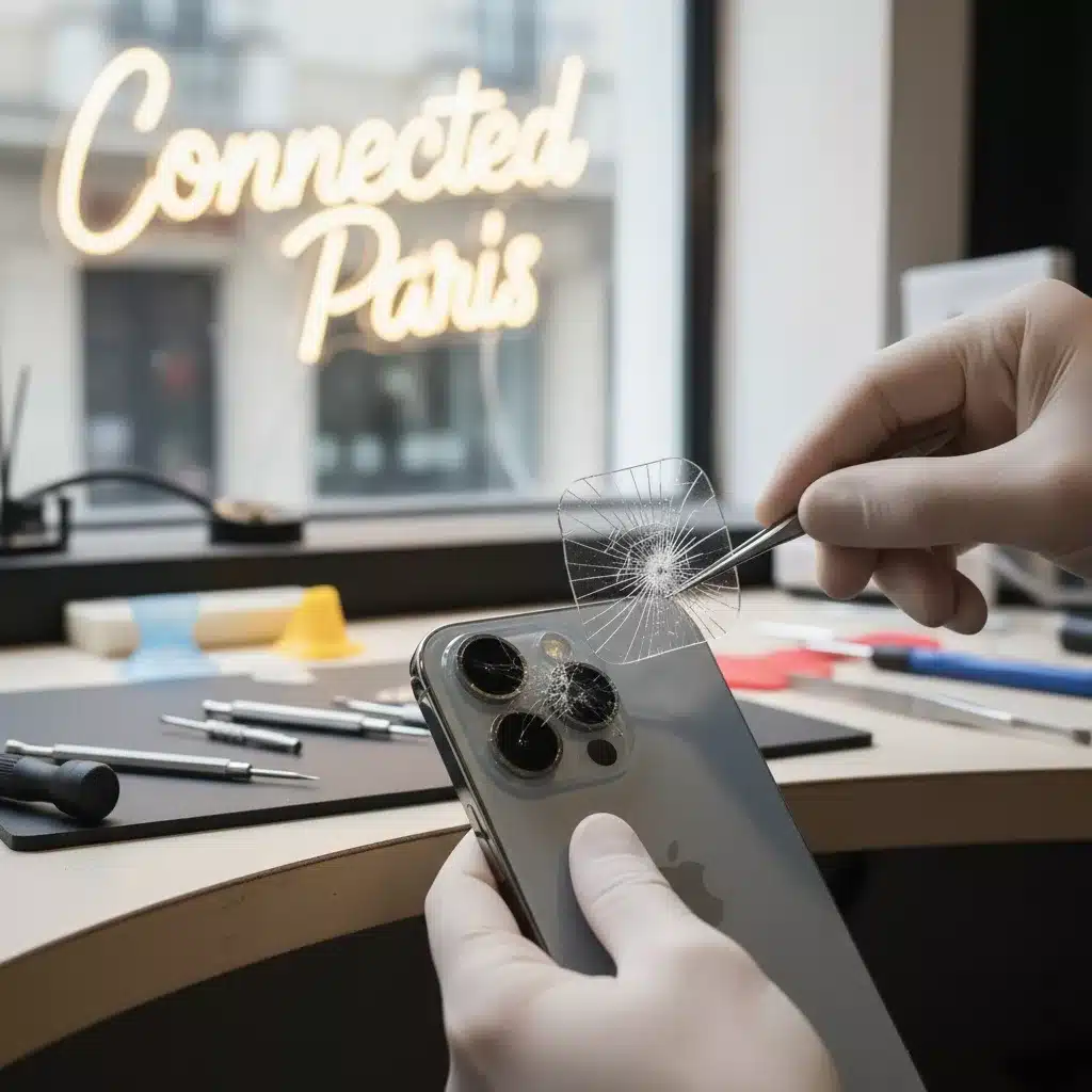 Chez Connected Paris, nous proposons le remplacement rapide et professionnel du verre de protection de la caméra arrière pour iPhone 17. Protège la qualité de tes photos et la longévité de ton appareil grâce à une intervention experte dans notre centre agréé Apple, situé au cœur de Paris.