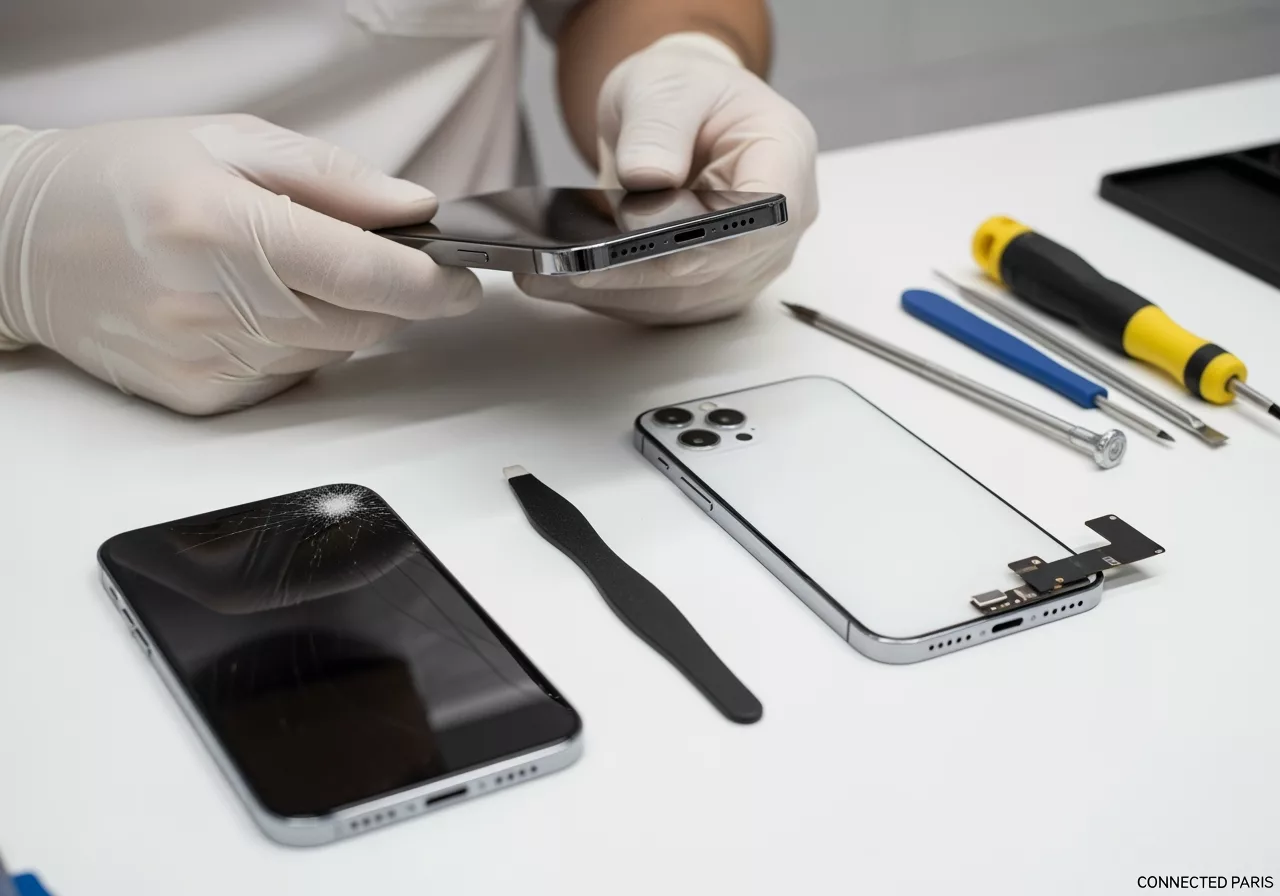 Pourquoi choisir Connected Paris Spécialiste Apple indépendant à Paris 1er, réparations locales rapides, transparence des prix, pièces d’origine et standards premium, engagement durable pour prolonger la vie de ton iPhone et réduire les déchets électroniques.